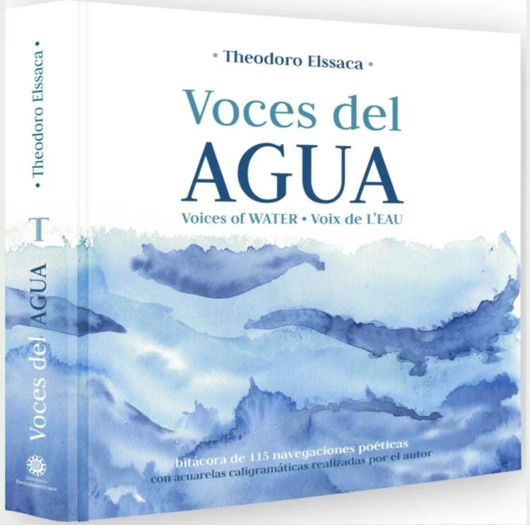El libro de Voces del Agua de Theodoro Elssaca es una nueva obra del autor chileno, donde se respira el extremo cuidado y detalle con el que Elssaca aborda su creación artística, poética, pictórica y caligramática, logrando desbordar claramente lo literario. Más aún, integrando su consolidada obra poética a las artes visuales que siempre ha cultivado. En este sentido, la obra de este autor nos sigue enriqueciendo con su visión integral y holística, permitiéndonos navegar por la bitácora de sus trescientas páginas colmadas de asombro poético en este libro en español, inglés y francés que se presenta como un concepto y objeto de arte.