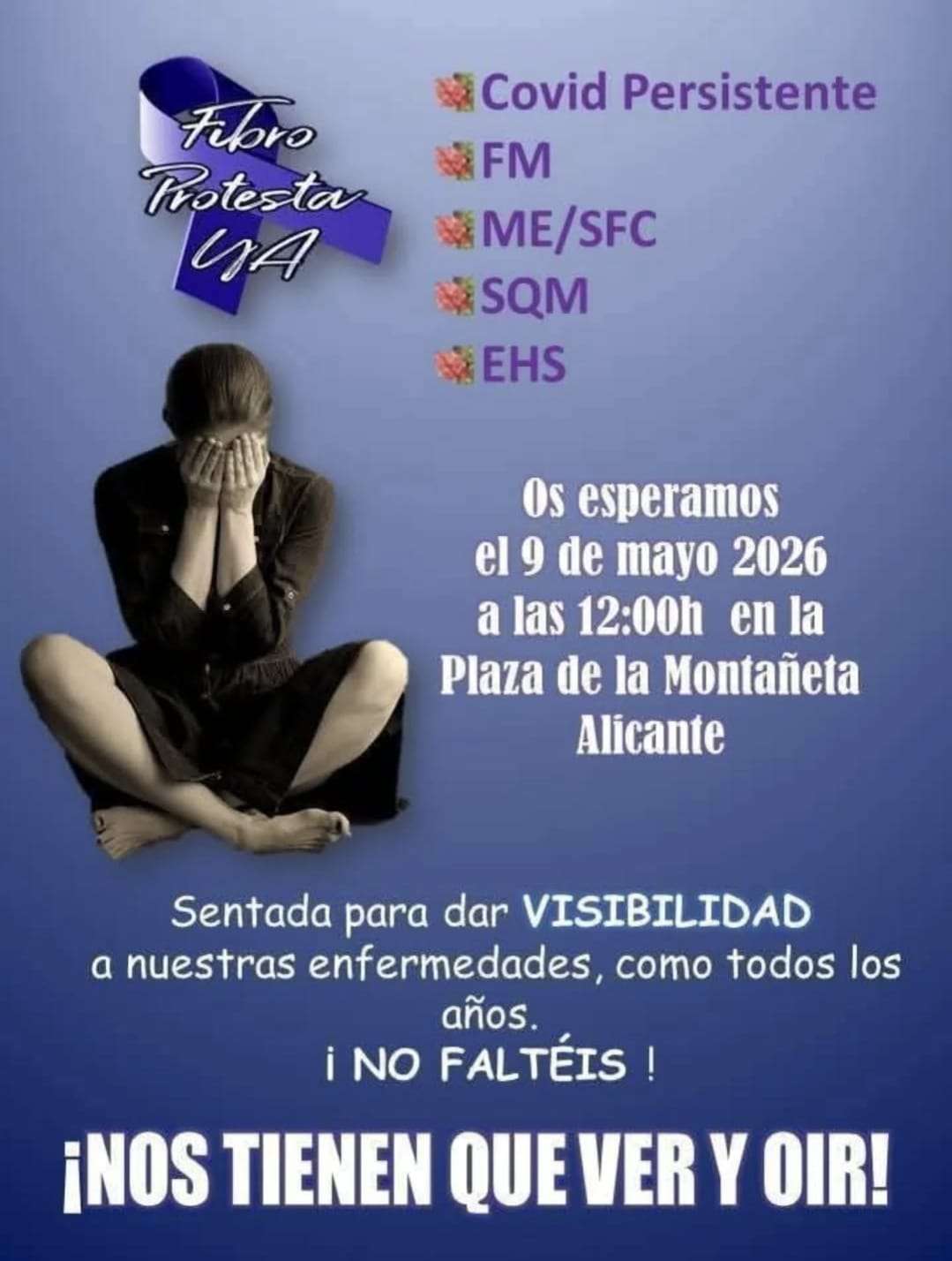 La iniciativa «Fibro Protesta UA» llevará a cabo su encuentro público anual para concienciar y exigir el reconocimiento de enfermedades crónicas y persistentes, incluyendo la COVID Persistente, la Fibromialgia (FM), la Encefalomielitis Miálgica / Síndrome de Fatiga Crónica (ME/SFC), la Sensibilidad Química Múltiple (SQM) y la Electrohipersensibilidad (EHS).