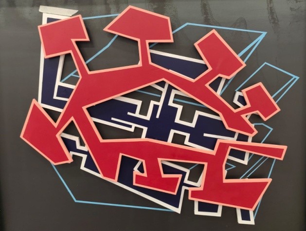 El análisis visual de las obras revela una compleja coreografía de capas y superposiciones. La pieza central de la exposición, presenta una compleja forma amarilla, dentada y laberíntica, que recuerda a una planta urbana o una micro estructura biológica, superpuesta a una matriz de líneas blancas abstractas sobre un fondo azul vibrante. Otras piezas exploran distintas paletas y texturas: una forma rosa-roja intensa sobre azul y negro con líneas azules, o una forma blanca calada con huecos interiores sobre líneas amarillas. La técnica, que parece implicar cortes de precisión y ensamblajes de capas, dota a las obras de una tridimensionalidad sutil, reforzando la idea de cavidad y profundidad. La ejecución es impecable, «técnicamente muy bien resuelta», lo que confirma a Mochales como una figura relevante en el panorama artístico contemporáneo.