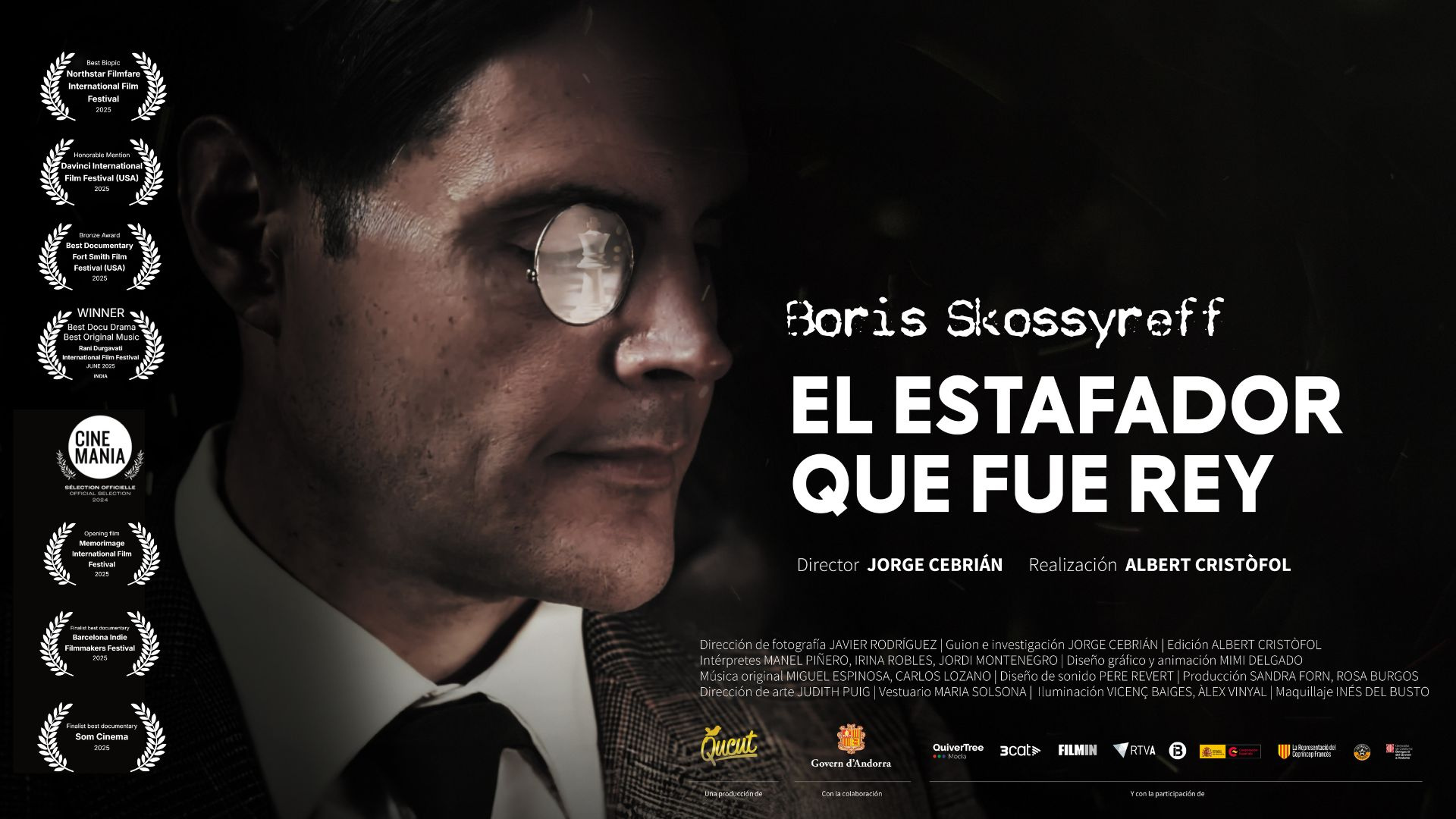 El próximo 26 de noviembre, a las 19:30, el Ateneo de Madrid (Prado, 21) acogerá la proyección del premiado documental andorrano ‘Boris Skossyreff, el estafador que fue rey’, de Jorge Cebrián. En el mismo acto se presentará el libro, escrito por el propio Cebrián, de igual título, editado por Anem Editors.