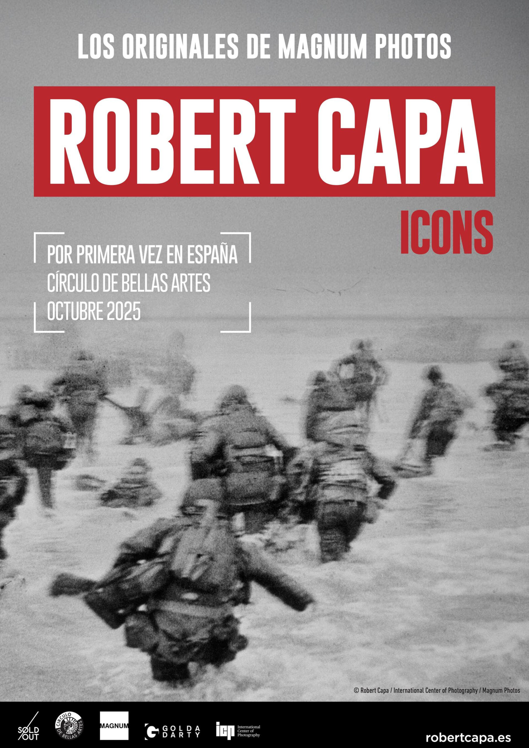 Coproducida por Sold Out y el Círculo de Bellas Artes (CBA), y comisariada por Michel Lefèbvre —escritor y periodista de Le Monde especializado en historia contemporánea—, Robert Capa. ICONS ofrece al visitante una inmersión única en el universo del fotógrafo al presentar fotografías originales de época (vintage prints) reveladas en su momento por el propio Capa, y muestra cómo circularon sus imágenes en periódicos y revistas de los años treinta, cuarenta y cincuenta. Estas fotografías “únicas”, lejos de las ampliaciones retocadas habituales en otras muestras, conservan la huella de su tiempo y transmiten con fuerza la esencia del fotoperiodismo: imágenes urgentes, directas y con toda su carga testimonial.