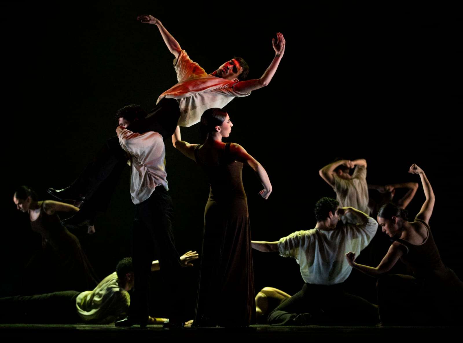 Bella Figura (cor. Jiří Kylián) recurre a movimientos expresivos de asombrosa modernidad y viste a los trece danzantes por igual, con faldas, no como efecto llamativo o discordante, sino como recurso histórico propio de diferentes culturas ancestrales que aún perviven, como el flamenco en sus más remotos orígenes, por citar un ejemplo; y como recurso que juega a ocultar y evidenciar, a la misma vez, el aspecto y la sustancia de la fuerza expresiva, de lo dramático, en expresiones corporales. Es un muy selecto fragmento de la parte grave, o sea, del tiempo musical más lento, de los sonidos de más baja frecuencia, en el Concerto grosso in G minor de Torelli, compuesto en el año de 1708. Torelli es uno de los parteros del nacimiento del concierto moderno. También del mismo coreógrafo es Indigo Rose y aquí hagamos un aparte con relación a la música: la sonata de Couperin dedicada al maestro Jean-Baptiste Lully en el año de 1725. Este músico francés es quien primero advierte sobre la universalidad del arte y el compromiso de cada artista por conciliar estilo, tradición y forma de interpretación, con tintes nacionales. Couperin estaba preocupado por derribar barreras y banderas, algo que devanaba sus sesos y compartía con su amigo el soberano Luis XIV, antes mencionado en el presente artículo. Apolo en esta pieza, a todas luces es el rey Sol. Pocas veces hemos visto homenajear obras del imprescindible checo, de Kylián, como esta vez; se nota la mano experimentada de la susodicha directora del conservatorio.