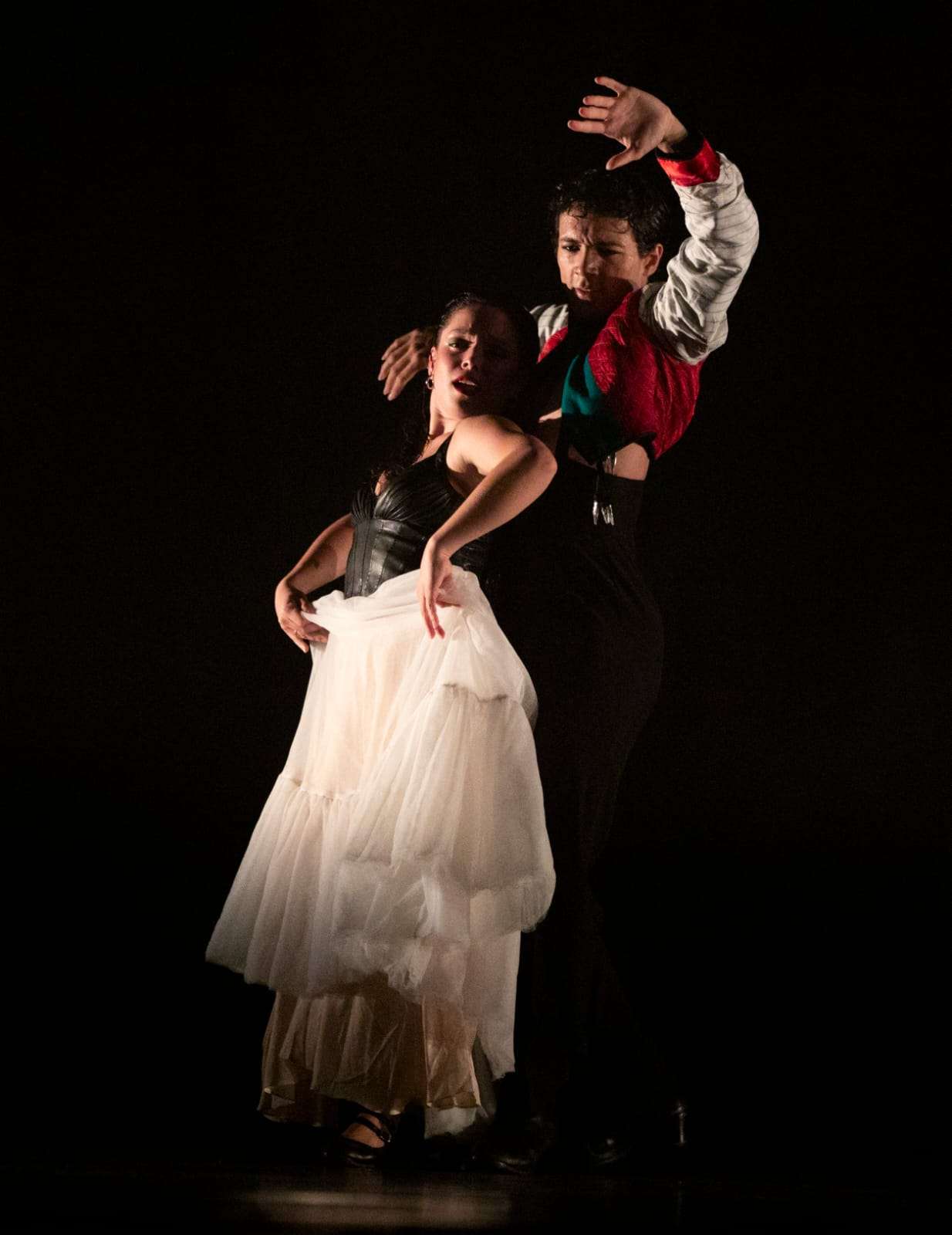 Las interpretaciones a dúo requieren un aparte, no tanto por el superior trabajo coreográfico que indiscutiblemente honra esta gala de Danza en superior, sino por la depurada y cuidadosa técnica de los ejecutantes. A Sweet Spell of Oblivion (cor. David Dawson) o “un dulce hechizo de olvido”, ha sido la obra escogida para abrir este cartel y enfatizo sobre la singular pareja Gemma Marco-Fermín López, quienes en apenas cinco minutos irrumpen con un fragmento del Preludio número ocho de Bach y nos dejan atónitos. “Están listos para salir a conquistar el mundo”, dirían sus profes Yevgen Uzlenkov y la consabida directora López Crevillén. Se trata de una de las partituras en clave —vocablo que abarcaba los instrumentos dieciochescos de percusión sobre cuerdas— del magnífico alemán, sobre las cuales más se ha especulado, pues no se sabe con precisión cuándo fueron compuestas, sino cuándo publicadas. En cuanto a Cactus (cor. Mariana Collado), otra pieza corta de apenas siete minutos, sorprende y conmueve ver esta singular glosa exegética basada en la histórica composición de Cerati, el rockero argentino. Hay que destacar el trabajo de rescate de la coreógrafa —conocida por sus prestigiosos premios como bailarina—, pues Cactus fue una de las obras que el desaparecido músico dejó inéditas, junto a Magia, concebidas para una malograda tetralogía de videoclips. Es quizás su composición más conmovedora. La coreógrafa logra mezclar con maestría, flamenco y chacarera —una danza folclórica oriunda del norte argentino—, bailada por parejas con total libertad de movimiento. Los bailarines escogidos para esta puesta en escena de Cactus en Danza en superior, consecuentemente han respondido con sentido íntimo y sobrecogedor a una locuaz poética de la danza, al modo de decir cosas con la estética de los pasos.
