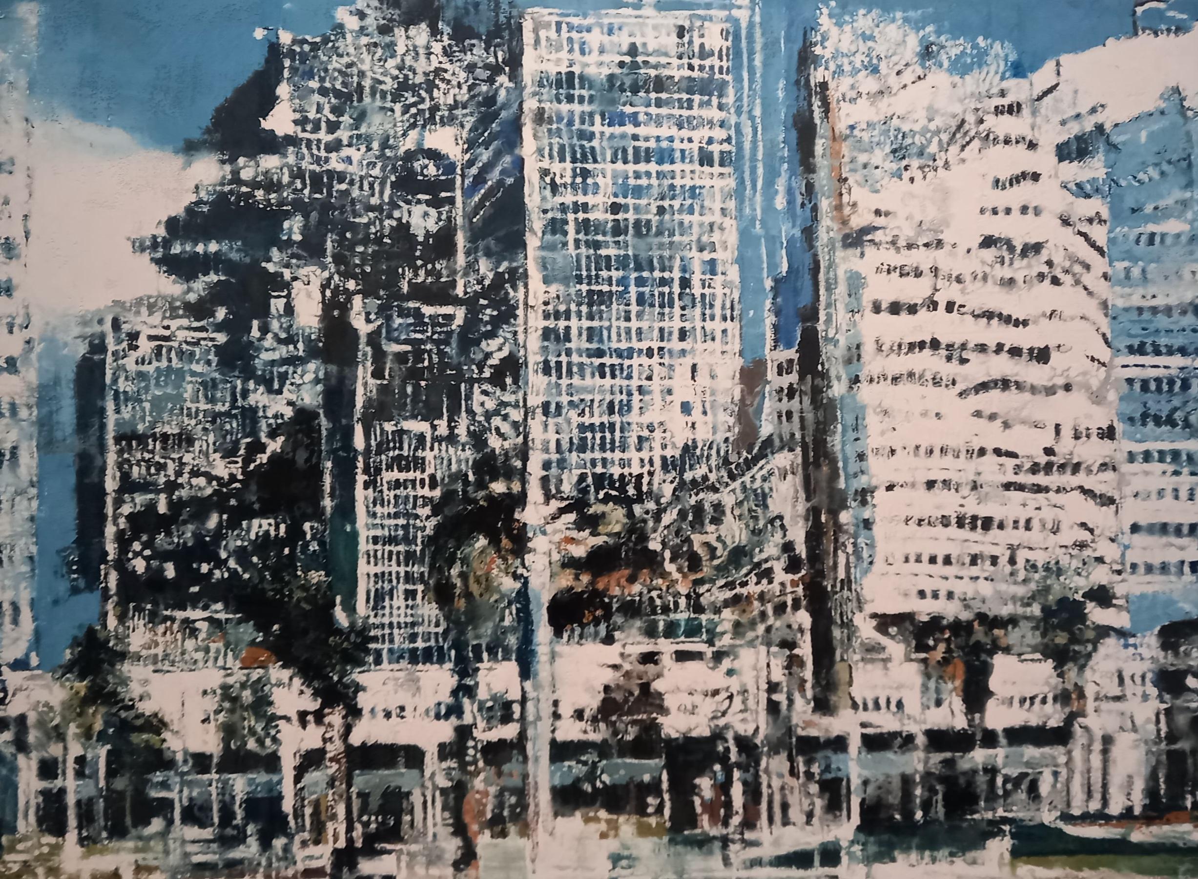 En Metamorfosis l (2011), Philippe Cognée maneja una singular técnica; reproduce imágenes fotográficas en las que aplica diferentes pigmentos mezclados con cera de abeja, ésta se disuelve hasta fundirse por ciertas zonas de modo que obtiene una imagen difusa donde el motivo inicial aparece con una nueva morfología borrosa. Aquí ofrece una visión precaria de nuestros entornos urbanos superpoblados en una imagen metafórica del mundo a punto de colapsar. El autor elige un tema a menudo banal que adquiere entonces dimensiones trágicas.