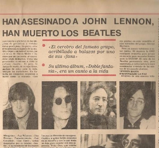 Aquel día llegó y nos dijo a la familia: Han asesinado al ex beatle. Yo pregunté: ¿A quién? En la mente se nos vino la imagen de los cuatro; él dijo: A John Lennon. Nos contaba como si en ese momento lo estuviera escuchando que lo había matado un tipo loco en Nueva York, de varios tiros, cuando volvía con Yoko Ono del estudio de grabación. Mi hermano, un año mayor que yo y yo, nos quedamos conmocionados. Éramos fans de los Beatles, gracias a nuestro profesor de la Academia de Inglés que siempre nos hacía escuchar su música: Penny Lane, Hey Jude, Yesterday, Let it be y tantas otras. Combinaba su pasión por Los Beatles con Simon y Garfunkel. Tanto es así que siempre han quedado en mi memoria dos canciones del dúo: The most peculiar man y Sounds of silence. Pero aquel diciembre había salido Double Fantasy y lo compramos, en el disco de vinilo. Escuchamos todas las navidades, como una liturgia, las canciones de Lennon: Woman, Starting over, Watching the wheels y la que dedicaba a su hijo Sean.
