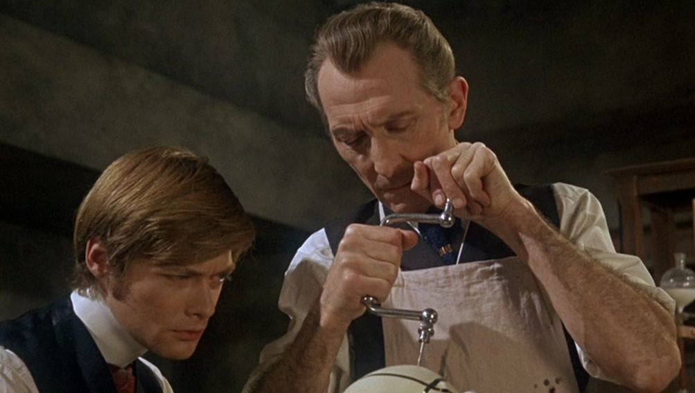 El comienzo de la película ya nos introduce en el mundo del crimen, cuando no vemos el rostro del asesino. Se trata de una máscara, que nos hace ver Terence Fisher, tan meticuloso siempre en su cine de terror, cuando llega a casa. Es el barón Frankenstein, ya envuelto en la maldad absoluta. Tal es el grado de psicopatía del personaje que, cuando llega Anna, la violará y la asesinará. Todos los personajes de la película entran en lo onírico, que es realmente monstruoso, porque la realidad se contempla desde ese prisma, un hombre que se ha convertido en un asesino, porque ya tiene el cerebro del monstruo. La mirada de Peter Cushing nos deslumbra, es la de un hombre enfermo, envuelto en la locura de haber creado al monstruo.