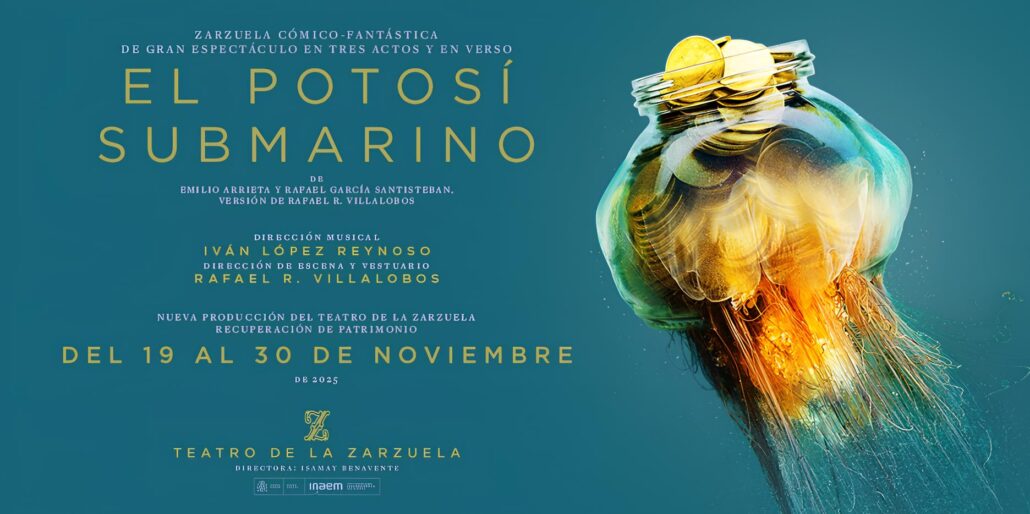 Existen dos géneros poco conocidos dentro de la lírica española tradicional. Por una parte, la zarzuela fantástica o de aventuras, con títulos como ‘El asombro de Damasco’ o ‘Los hijos del Capitán Grant’, heredera de las temáticas de Julio Verne y de Emilio Salgari. Por otra, la satírica, aunque con el inconveniente de la velocidad con la que los personajes y los tipos se oxidan. De ambas participa ‘El potosí submarino’ estrenada en 1870, a poco del destronamiento de Isabel II y la llegada de la Primera República. Que ahora el Teatro de La Zarzuela rescata del olvido y da nueva vida.