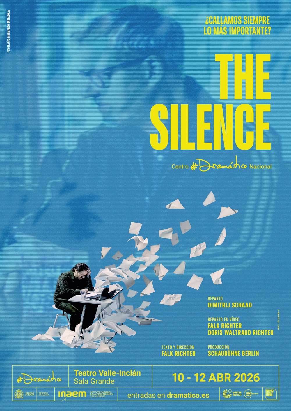 The Silence, en su episódico paso por Madrid, es un montaje teatral dirigido por el alemán Falk Richter en el Teatro Valle-Inclán, una de las sedes del Centro Dramático Nacional —de cuyos trabajos ya hemos informado—. Se trata de una pieza de autoficción que intenta mezclar el drama familiar con la crítica política, aunque no siempre logra que ambas piezas encajen. Richter, figura clave de la Schaubühne de Berlín, trae aquí su sello habitual: tecnología en directo y una carga intelectual muy marcada.