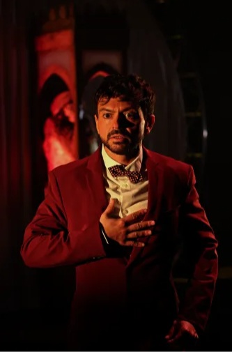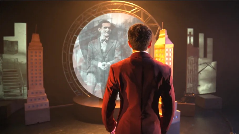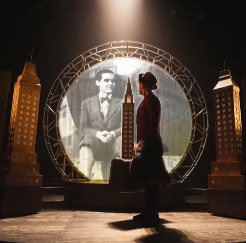 Poeta (perdido) en Nueva York no es un monólogo cualquiera, sino una inmersión completa en el universo de Federico García Lorca. Desde el primer instante, esta producción de El Aedo nos transporta a una metrópolis que se siente viva y hostil a la vez. El escenario, que presenta al centro de su espacio una plataforma circular y giratoria, va más allá de un simple suelo; se convierte en un personaje más, un lugar bien definido en constante movimiento que refleja el desasosiego y la fascinación del poeta. Este dinamismo físico, combinado con una cuidada iluminación y proyecciones, hace que la ciudad no sea solo un fondo, sino una presencia que envuelve al espectador.