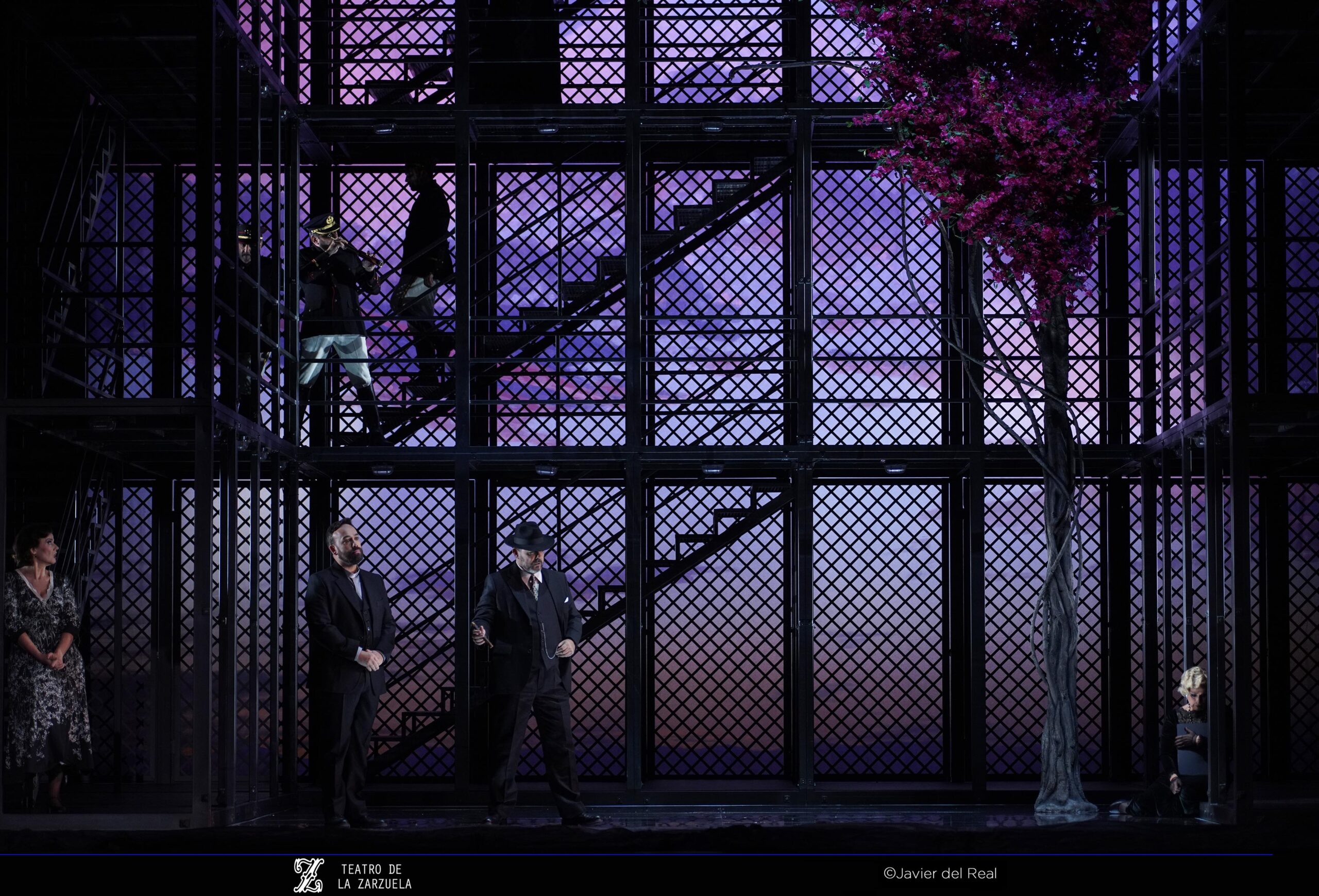 Frente a una partitura donde está presente el eco de ese nacionalismo musical e incluso de un cierto andalucismo —¡esas brillantes castañuelas!— la puesta en escena rehúye totalmente dichas referencias y se decanta por un espacio escénico en el que predominan los negros y un decorado corpóreo de Daniel Bianco de férreas rejas negras sin ninguna clase de adornos ni atrezos pero que puede servir de forma versátil como patio, plaza, reja, capilla o alcoba.