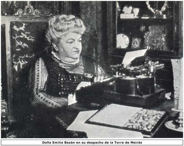 Animada desde niña por su padre, se vuelve una ávida lectora desde muy joven; manifiesta también su afición por la escritura dándose a conocer con diversas publicaciones en periódicos gallegos y madrileños a los que enviaba colaboraciones desde 1866 con solo 15 años. Se consagró en 1876 con motivo de la celebración del Segundo Centenario del nacimiento de Fray Benito Jerónimo de Feijóo que se celebró en Orense. Acude a la convocatoria de cuatro premios de los cuales la Comisión solo concede dos: el «Pensamiento de oro y plata» a la poesía «A Galicia» de Valentín Lamas Carvajal, uno de los precursores del “rexurdimento” y creador junto a Manuel Murguía de la Real Academia Gallega (fallece el mismo día de su constitución) de la que acabaría siendo nombrada Presidente de honor Dª Emilia Pardo Bazán en 1906. En esta ocasión recibe la «Rosa de oro», por unanimidad, por su «Oda a Feijóo». Lamas Carvajal tenía 27 años y Pardo-Bazán 25 años. Eran jóvenes, pero siendo la esperanza de vida entonces 50 años es como su hoy tuvieran 40 años o más.