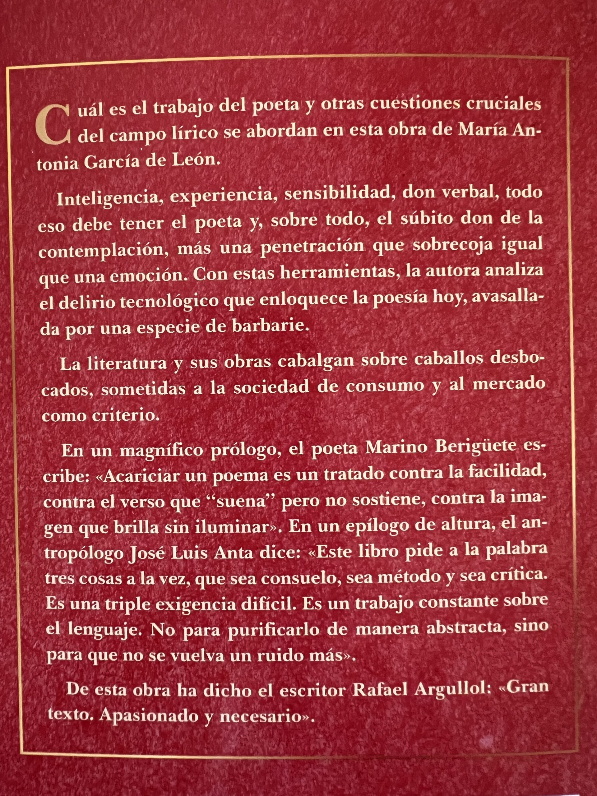 Tengo en mis manos el libro “Acariciar un poema”, obra recién publicada por Antonieta García de León, que se erige como un tratado contra la facilidad: contra el verso que “suena” pero no sostiene, contra la imagen que brilla sin iluminar.