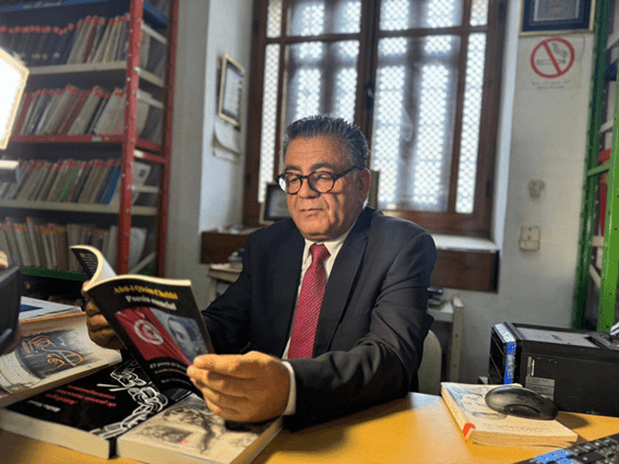 Ridha Mami en su despacho de la Universidad de La Manouba, Túnez